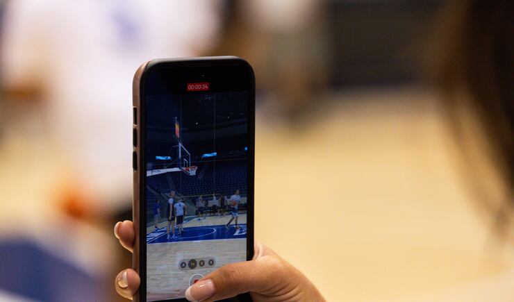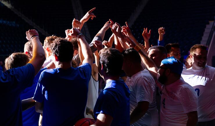 All of the media members-turned-ballers were divided into two squads to prepare for battle. I ended up on Team Blue, led by head coach Trevin Knell and assistants Richie Saunders, Fouss Traore and Noah Waterman. My teammates included Mitch Harper of KSL Sports, Kevin Reynolds of the Salt Lake Tribune, BYUtv’s Spencer Linton along with a number of other notable figures. Spencer Johnson was placed at the helm of Team White, with help from Dallin Hall, Jaxson Robinson and others.