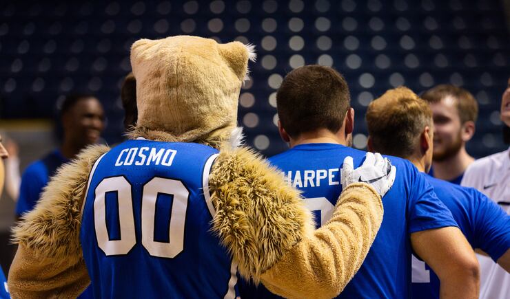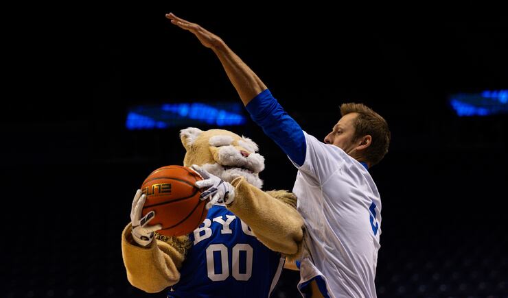 I consider myself a team player, but there are some things I just can’t let slide. Cosmo the Cougar — a late addition to our side — truly let us down. He proved to be a major liability on defense. If he can pull off the most insane stunts at every football game, how come he couldn’t make a free throw? That cat can dance, but his basketball chops left much to be desired. Come at me, Cosmo!