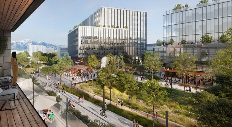 The development is intended to be walkable or accessible by bikes or e-bikes, served by FrontRunner and rapid transit lines and within the community itself, automated circulators that would transport people along designated routes.