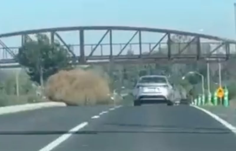 Captioned, “The mother of all tumbleweeds,” an X user posted a video of a tumbleweed the size of a Toyota Corolla rolling down the interstate on Nov. 21 in Southern California.