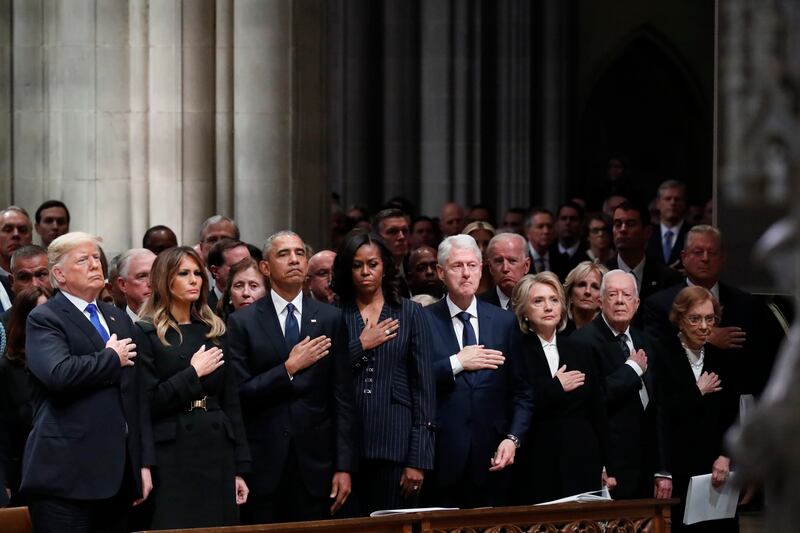 But a lot has happened since then, and the animosity between Donald Trump and President Joe Biden makes it virtually impossible to imagine a day when the current president and first lady, and the former president and first lady, and all their predecessors, sit together on the same pew of the National Cathedral — or do anything together, whether amicably or gritting their teeth.