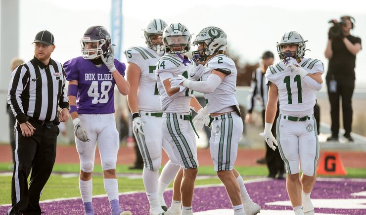 No. 5 seed Olympus used a dominant second quarter to roll past No. 4 seed Box Elder for the emphatic 5A quarterfinal victory. The win sends the Titans to the semifinals at Rice-Eccles Stadium for the first time since 2018. Quarterback Chase Moseley threw five touchdowns to lead the Titans, including four in the second quarter as his team scored 28 unanswered points in the quarter to stretch a 3-0 lead at the end of the first quarter to 31-0 by halftime. Ty Seagle and Caden Lloyd each caught a pair of those touchdowns, with Seagle capping the Olympus scoring with a 7-yard TD reception with 19 seconds left in the third quarter for the 41-0 lead. Box Elder’s Dax Sumko tacked on a pair of a rushing TDs in the fourth quarter with the outcome well in hand.