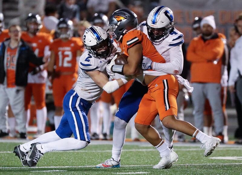 No. 4 seed Skyridge won a thrilling overtime rematch against No. 5 seed Pleasant Grove 37-30 in the 6A quarterfinals. The Falcons offense started slow, but picked up in the second half for the comeback victory. Jackson Stevens and Jack Burke connected twice in the third quarter to close the gap. Pleasant Grove had two chances to seal the victory in the final moments of the game, but had two interceptions negated by penalties. Carter Sheffield put Skyridge ahead with a powerful run in overtime, and the defense clinched the Falcons’ fourth straight semifinal appearance. Skyridge will look to avenge their only other regular season loss against No. 1 seed American Fork on Nov. 10.