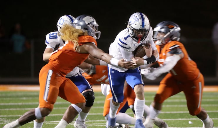 Top seed Timpview jumped all of No. 8 seed Brighton building a 34-point lead, nearly gave it all back, and then pulled away late to secure the 55-35 victory in the 5A quarterfinals. Taani Makasini and Haven Halliday each returned an interception for a TD for the T-Birds, the later polishing off the Bengals and any hope of a comeback. Timpview led 41-7 after Makasini’s 66-yard interception return with 3:01 left in the first half, but Brighton scored a TD just before halftime, and then three straight in the third quarter to trim the lead to 41-35. Timpview regrouped on both sides of the ball after that to secure the win in a game Helaman Casauga rushed for three TDs. Timpview advances to face No. 5 seed Olympus in the semifinals on Thursday.