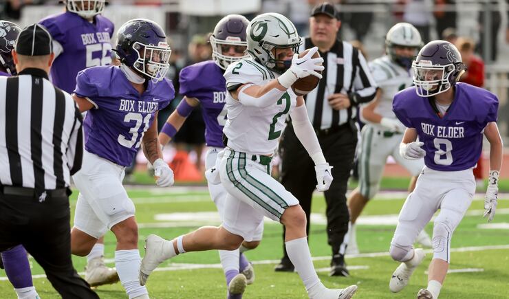 No. 8 seed Green Canyon eked out a huge upset against previously undefeated No. 1 seed Sky View. The Wolves exacted revenge against the Bobcats, after their 21-7 loss in the regular season. Wolves quarterback Payton Wilson had a spectacular performance, throwing two long, first-quarter touchdowns - a 62-yarder to Cache Cragun and a 60-yard completion to Dewey Egan. Egan proved to be the star of the night, having three touchdowns, which included a 95-yard kick return, giving the Wolves a necessary boost in the third quarter. Clinching the game in Q4 with 1:22 remaining, Wilson dodged his way in for a one-yard scoring run, ensuring the Wolves’ thrilling victory against the Bobcats. Green Canyon will play against No. 4 seed Park City in the semifinal on Nov. 9.
