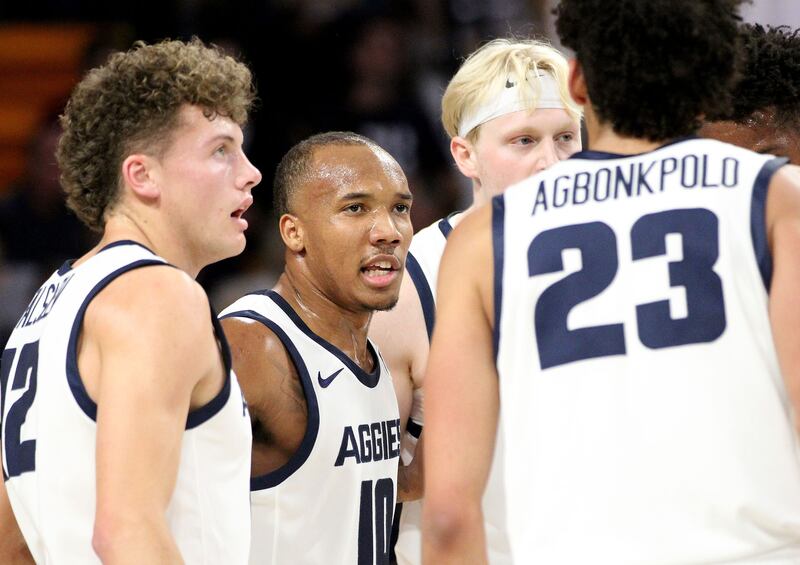 Junior guard Josh Uduje, a native of England who came to USU via Coastal Carolina, started the exhibition, contributing 10 points and two 3-pointers, while Kalifa Sakho, a 6-11 junior forward from France, was also in the first five last week. Max Agbonkpolo, a 6-9 graduate wing transfer from Wyoming who started his career at USC, scored four points in 13 minutes, his first action since injuring a foot during practice in late September.