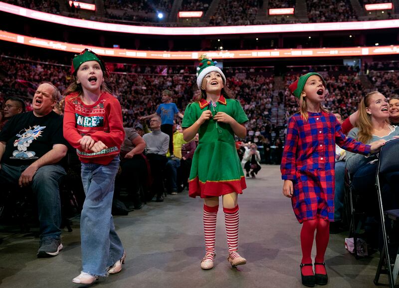 Whitney Swasey said she and her family have been coming to the event for so long, she can't remember the number of years. The Swasey family happily sang along, sporting flashing light necklaces, Santa sweaters, elf hats and more.
