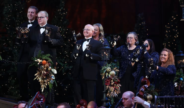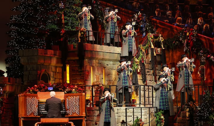 No Christmas concert would be complete without a dynamic organ solo from Tabernacle organist Richard Elliott, and this year’s didn’t disappoint. Accompanied by the Gabriel Trumpet Ensemble, Elliott performed “To the Cradle Run” (featuring “Bring a Torch, Jeanette, Isabella”), and screens to the left and right of the stage provided close-up shots of his remarkably fast footwork.