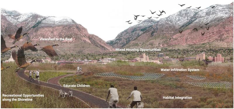 Salt Lake City has already embarked on developing an integrated watershed management plan that views drinking water, sewer and stormwater management as part of one larger ecosystem, according to Briefer, with Salt Lake City’s public utilities department. Mountain snowpack feeds the system at the top of the watershed, and the Great Salt Lake receives it at the bottom. Restoring local waterways such as the Jordan River with native vegetation would create habitat, improve water quality, and potentially even attract investment to the west-side communities nearest to the Great Salt Lake, says Briefer.