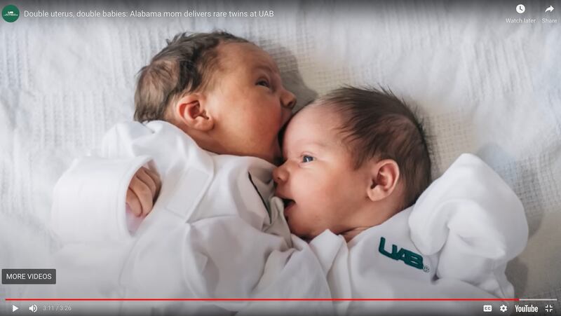 Kelsey Hatcher was diagnosed with a double uterus at 17, and that diagnosis helps explain how she delivered two babies over two days at the University of Alabama at Birmingham Hospital just before Christmas this year, per the University of Alabama at Birmingham.