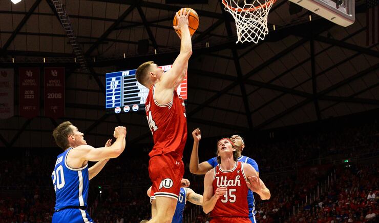 The second came off a sloppy BYU turnover that led to Madsen stealing the ball, then finding a wide-open Carlson in transition for a breakaway dunk and a 26-17 Utah lead.