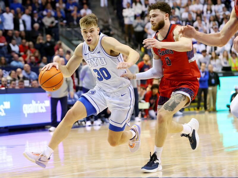 “Everything I’ve always wanted. As a kid growing up, you’ve always wanted to play in front of big crowds and sold-out crowds. Throughout my college career, I never got to do that. When I came into Division I, it was the COVID year so we were playing in empty arenas,” he said. “My second year, I went to a smaller school and didn’t get that real college game experience. So my last year, that was something that I was looking for when I was deciding where to go. I watched BYU games before I got here and I was like, ‘Yeah, I need to play in front of this.’ It’s been everything that I’ve wanted. I’ve gotten my own name chanted. I’ve seen them make teams miss free throws. It’s definitely been everything I’ve always dreamed of when I was younger.”