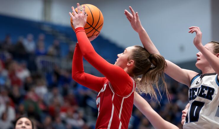 On the very next possession, Bradshaw did what she had done the entire first half, driving to the basket and getting a tough layup to fall. The freshman finished with a game-high 22 points in her first state title appearance.