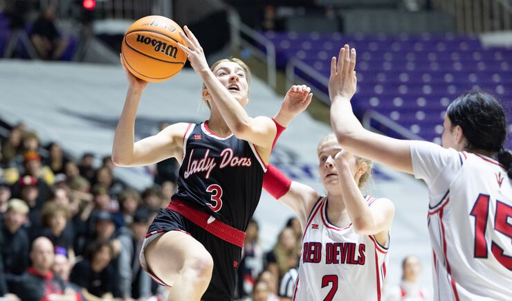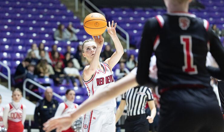 She believes there’s been a little more pressure on this year’s team as they’re all returning staters, and they might’ve even felt some of that pressure in the first half against a Spanish Fork team that the Red Devils beat by 46 and 28 in the two region games.