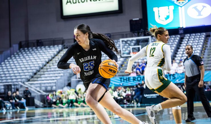 The Cougars trailed 43-39 at the end of the third quarter before erupting in the decisive fourth quarter. BYU scored the first 13 points of the period, which included a 3-pointer by Falatea and two 3s by Calvert.