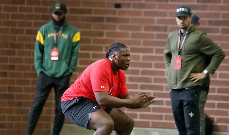 “Daniels will require development time to refine his footwork and consistency to match up with NFL rushers, but he has the athletic twitch and versatility to boost an offensive line depth chart in the NFL. His experience at multiple positions is a plus and he grades as a swing tackle/guard with down-the-road starting upside.” — Dane Brugler, The Athletic.