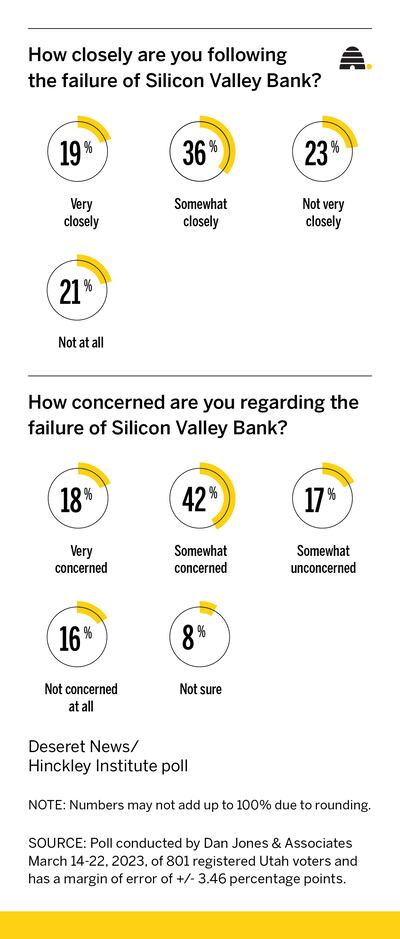 Just days after the failures, a new Deseret News/Hinckley Institute of Politics poll found a majority of Utahns were deeply concerned about the Silicon Valley Bank failure and many were closely monitoring the situation.