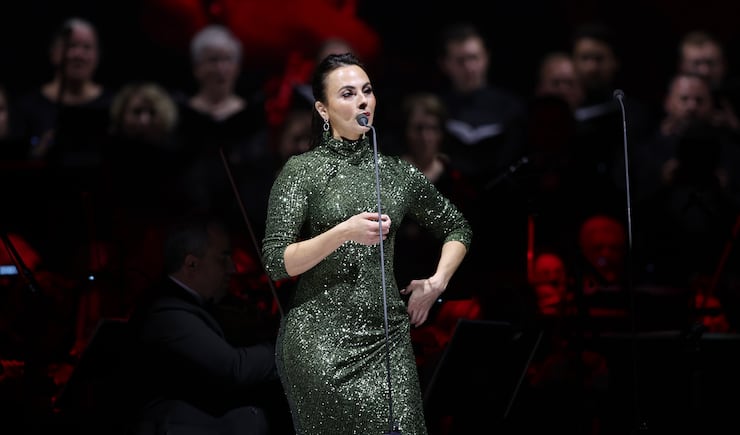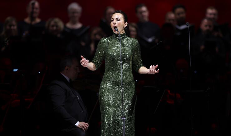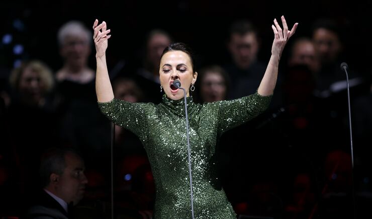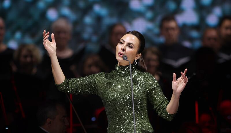 The softer, more nuanced side of Bocelli’s artistry came through in the second half of the concert, on romantic songs like “Maria” from “West Side Story” and “Can’t Help Falling in Love With You.” To usher in this portion of the show, the orchestra, led by the remarkably animated Steven Mercurio, performed “Hedwig’s Theme” from “Harry Potter.” Australian-American soprano Amy Manford later brought an operatic twist to ABBA’s “Winner Takes It All.” And dancers Brittany O’Connor and Paul Barris occasionally bolstered Bocelli’s numbers with dance choreography.