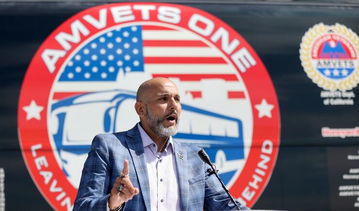 A group of seven AMVETS members and two bus drivers launched their tour with a presentation in Sacramento on Monday. They will make stops in Denver, Kansas City and Cleveland this week before ending Sunday at Rolling to Remember, a motorcycle rally raising awareness for U.S. prisoners of war, those missing in action and veteran suicides.