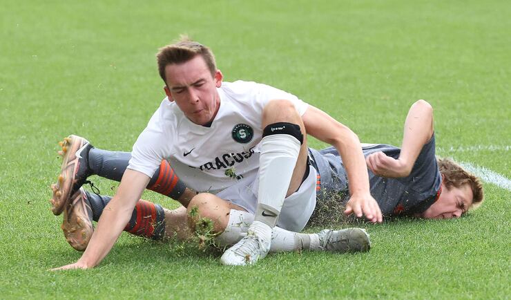 Skyridge managed a few half-chances over the second half, but the best chance came with less than 30 seconds left in the game. The ball was heading toward goal after a battle for the ball ensued near the Syracuse 6-yard box, but Syracuse’s Cooper Eddy cleared the ball off the goal line with his head to maintain the clean sheet.