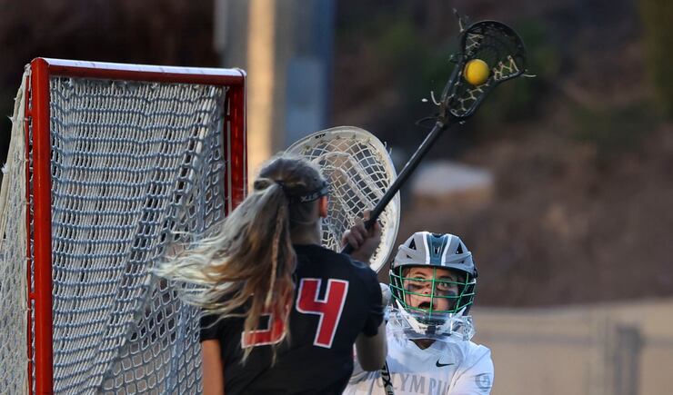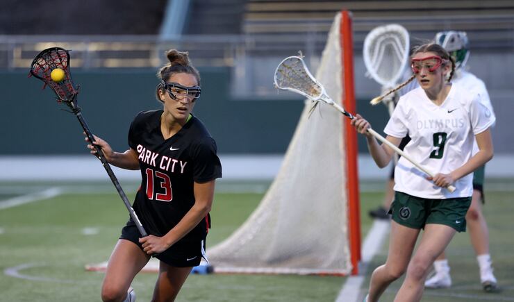 At the 5:36 mark Park City was shown a yellow card, and during the two minutes of even-strength lacrosse, Olympus scored three times, including two from Hannah Nelson, to race ahead 14-11.