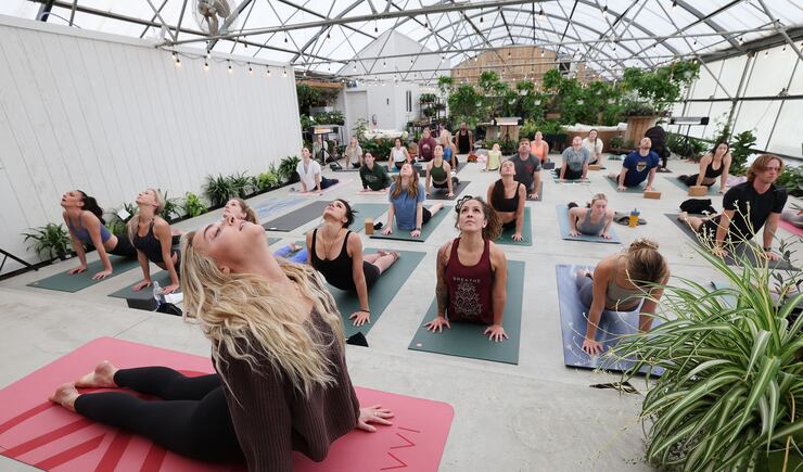 Shona Kay owns a greenhouse called Greenhouse Wellness in Orem, Utah, where she hosts wellness workshops and free yoga classes led by different instructors, where students can practice yoga and wellness amid plant life. She told the Deseret News that one reason she practices yoga is to get out of her head.