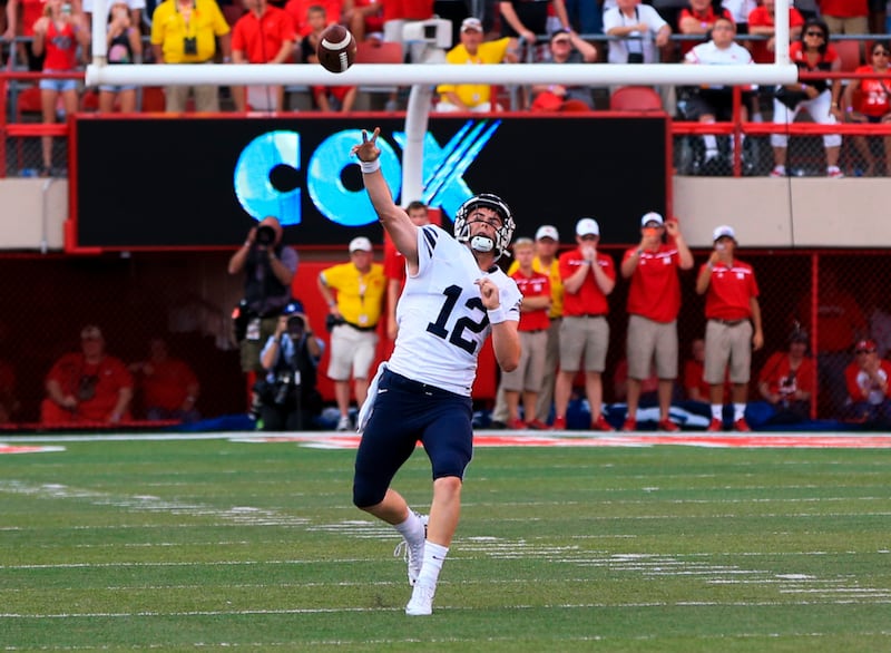 Relying on a Hail Mary catch to win is a slim proposition, but BYU’s chances seemed even further remote. Not only were the Cougars facing a program that hadn’t lost a season opener in an NCAA-best 29 years, but they were also attempting to do it on the road and without star quarterback Taysom Hill, who had been knocked out of the game.