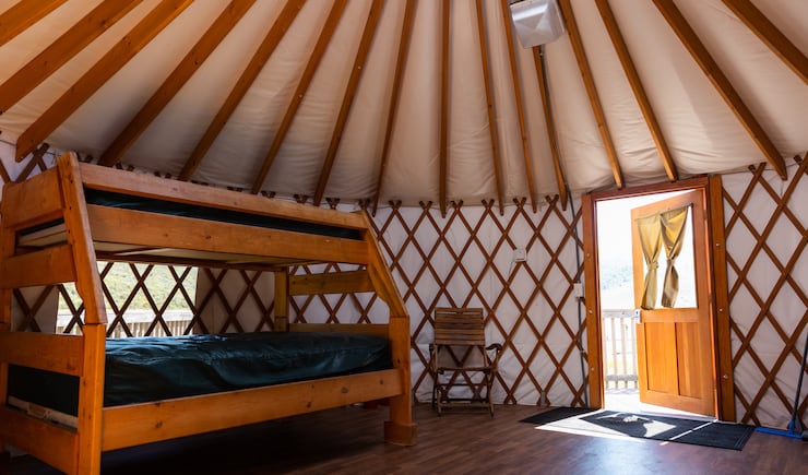 Or perhaps you prefer bunking in a Conestoga wagon, originally designed centuries ago to carry up to six tons. Today at East Canyon State Park you will find a mini-fridge, a king-sized bed and bunk-beds for the children in the wagons.