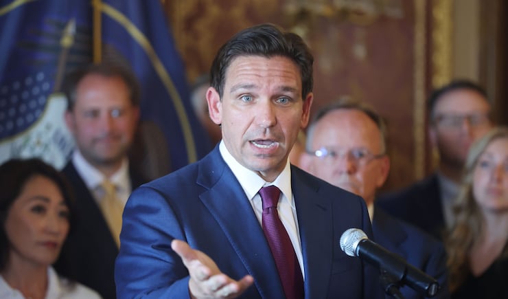 On education, DeSantis said Florida schools are “teaching normal education, not political indoctrination,” and he also said he beat “leftist ideologues” by eliminating diversity, equity and inclusion offices at Florida state colleges and universities.