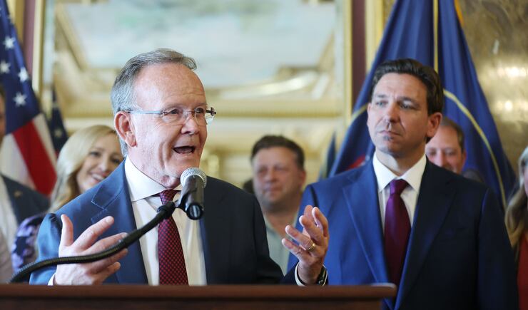 He was introduced by Utah state Senate President Stuart Adams, who has endorsed DeSantis. Adams ribbed the governor over which state has the better economic record — both Utah and Florida have ranked first in economic performance in national polls.