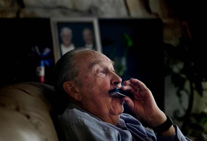 On good days, he volunteers at a local senior center, helping teach older adults to play the harmonica. He started playing it when he was in the Navy. He was a missile technician on a nuclear sub and says facetiously that fellow sailors sent him to the bilge and told him not to come back up until he played better.