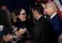 Prior to the event, as the room filled, dignitaries and invited guests mingled and took pictures together. Jazz music played over the speakers.