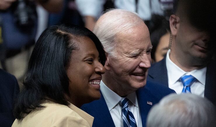 Trump played a central role in Biden’s fundraising speech. The president rhetorically asked the audience to think of a single global leader “who says they want to see Trump back.” Biden attributed much of America’s declining civility to the former president, noting that his motorcade will sometimes pass large Trump signs with vulgarity written on them with children in the vicinity. “How far we’ve come,” Biden said.