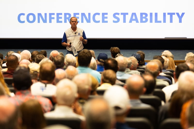 It was more of a command than a question from a member of the audience toward the tail end of BYU athletic director Tom Holmoe’s annual Education Week presentation on Wednesday in the packed Varsity Theatre at the Wilkinson Student Center.
