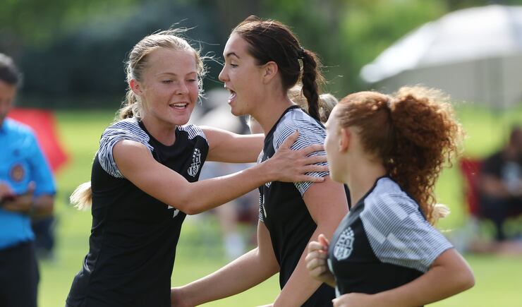 Senior defender Calie Clark got a well-timed touch on the ball as it rebounded off the crossbar in the 77th minute and nudged it in for her first career goal.