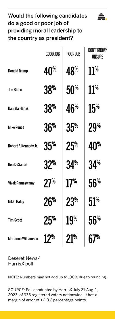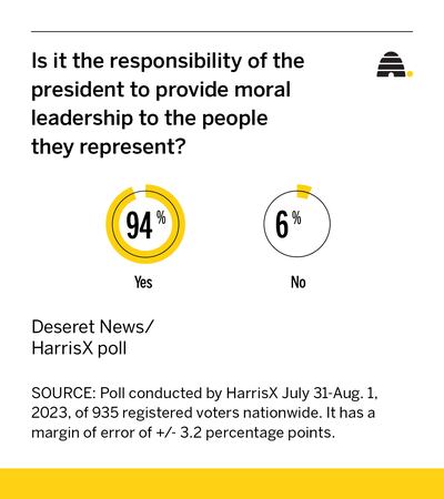 In a new national poll conducted by Harris X for the Deseret News, American voters were asked whether it is the responsibility of the president to provide moral leadership to the people they represent.