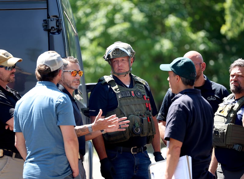 Neighbors say Robertson was shot and killed between 6 and 6:30 a.m. Wednesday as the FBI carried out a raid related to his social media posts where he made threats to President Joe Biden and other Democrats. Not long after the shooting, Biden arrived in Utah as part of a tour of Western states.