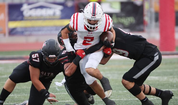 East’s defense tightened up further after the break, forcing a turnover on downs, an interception and three punts to hold Alta scoreless for the entire second half.