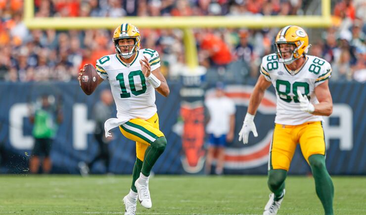 6:08 — Jordan Love kicked off the season — and a new era of QB play for the Packers — with an 8-yard touchdown pass to Romeo Doubs on third-and-goal. Green Bay 7, Chicago 0.