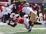 Johnson was 9 for 17 for 117 yards and a touchdown, but lost a fumble. The redshirt freshman had a couple of nice throws, including passes of 22 and 35 yards to Devaughn Vele, and had nice patience and touch on the seven-yard touchdown pass to Landen King.