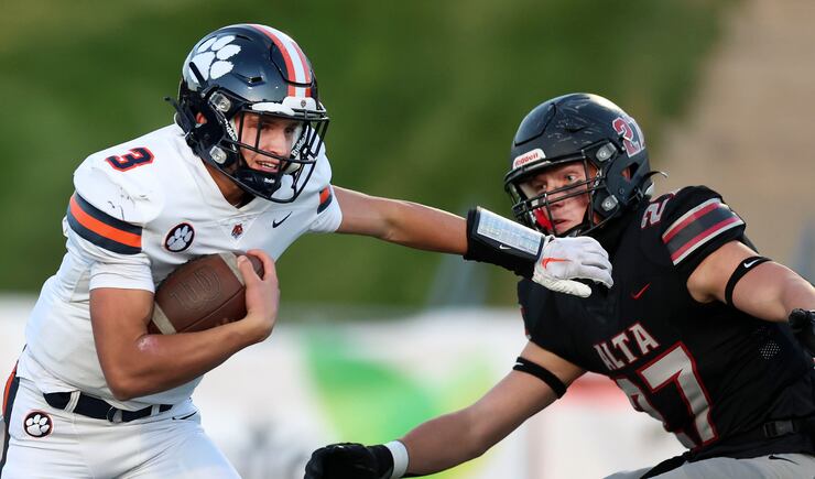 Two late fourth-quarter touchdowns pushed the Davis Darts over the Layton Lancers 31-21. Layton held a 21-14 lead early in the fourth quarter, which the Darts tied after Tradon Bessinger found Bode Sparrow for the equalizer touchdown. Owen Talbot ran into the end zone for the Darts with 4:33 left in the game for the win. Davis improves to 6-1 on the season.