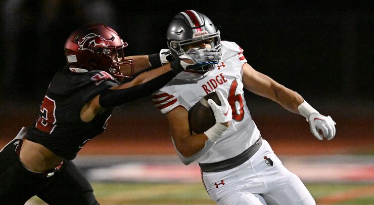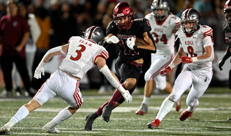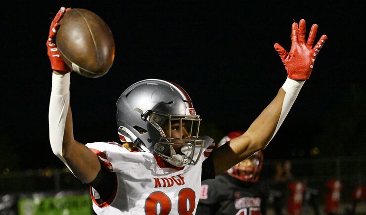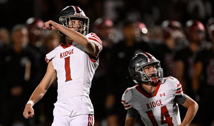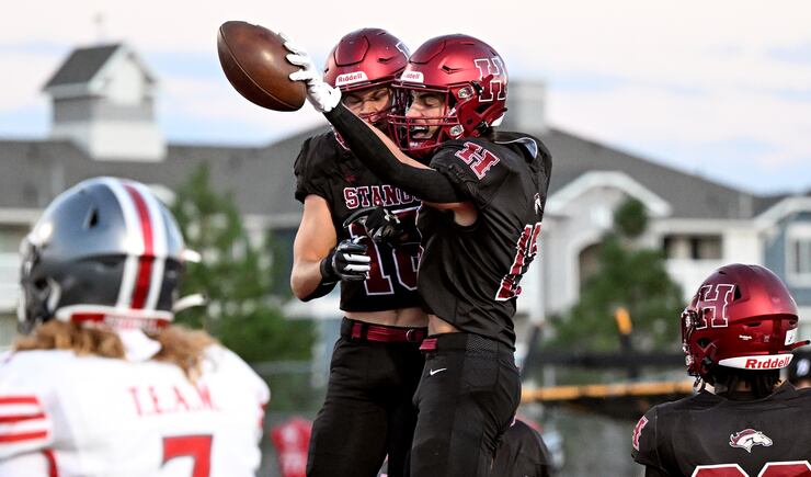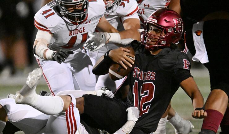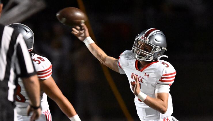 The Mountain Ridge Sentinels beat the Herriman Mustangs 33-24. It remained close throughout most of the game, with Herriman taking a slim 24-17 lead at halftime. However, the Sentinel defense held the Mustangs scoreless in the second half, and scored 16 points of their own for the win. Mountain Ridge’s Wyatt Bingham found Legend Glasker in the end zone twice, helping to push their team to a 6-1 record.