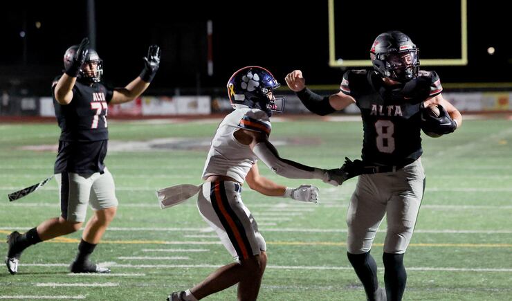 In a Week 8 clash, the Alta Hawks (5-3) secured a 24-10 victory over the Brighton Bengals (6-2). Brighton started strong with Kaden Morzelewski’s 1-yard run within the first two minutes of the game, followed by a 37-yard field goal from Drake Fletcher. Thiago Moreira’s 37-yard field goal put Alta on the board, narrowing the gap at halftime. Alta then took control in the second half with quarterback Kepa Niumeitolu connecting with Nolan Lohness for a 38-yard touchdown to tie the game. Matt McKea sealed the win with two 1-yard touchdown runs in the fourth quarter.