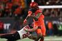 Barnes, who was the recipient of two targeting fouls by the Beavers, took a big shot to the chest that knocked him out of the game and sent him to the hospital.