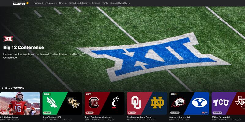 - Click on Watch, then scroll until you find the Big 12 Conference page, where all conference-related live streams can be found.