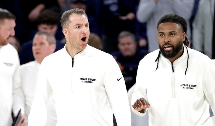 Much like Anderson, who brought three players along from his previous job at Arkansas State, including starting quarterback Logan Bonner, Sprinkle convinced senior point guard Darius Brown II and junior forward Great Osobor to leave Bozeman and join him at Utah State. Their comfort level with Sprinkle’s system and coaching style has paid off handsomely for everyone.