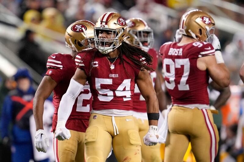 That’s when Love tried to throw across his body over the middle while on the run, and Dre Greenlaw intercepted the ill-advised pass, his second interception of the game, to seal the win.