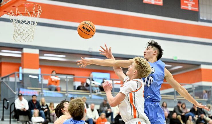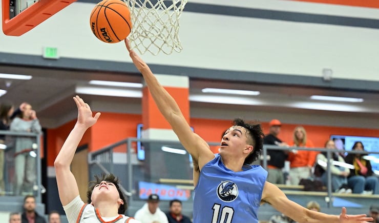 He passed the ball to Mekhi Martin, who instead of trying to dribble out the clock attacked the basketball for a contested layup but missed. Skyridge’s Ryder Gentry corralled the rebound with 3.8 seconds remaining, and immediately kicked the ball up court to Dane Housley who had just enough time to dribble up court and get up a decent 3-point shot attempt that bounce off the side of the rim.