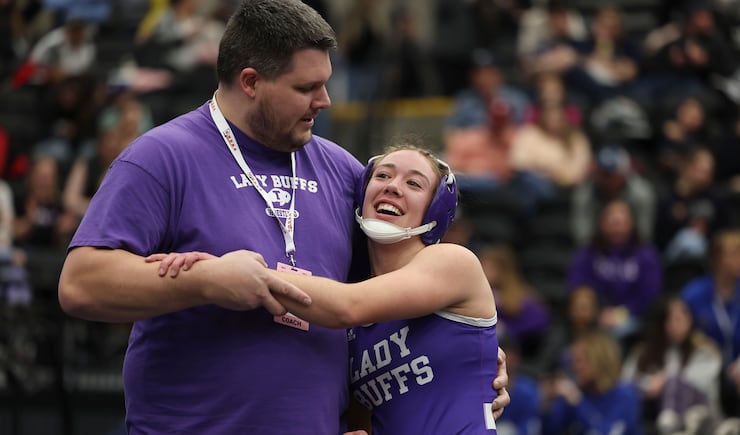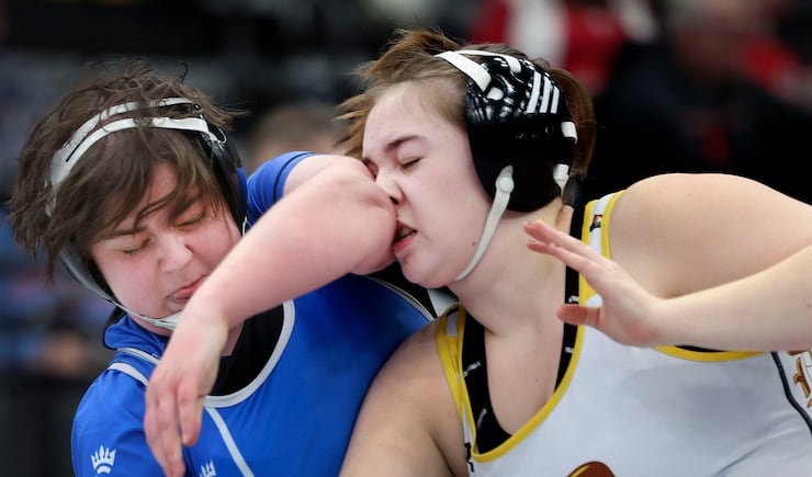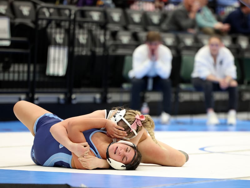 The following six returning state champs advanced to the semifinals on Wednesday in their quest for a repeat: Davis’ Kristina Kent (100), Syracuse’s Emily Ball (110), Weber’s Aleena Navarrete (120), Copper Hills’ Brooklyn Pace (125), Westlake’s Celeste DeToles (135) and Westlake’s Keilikki Nau Rarick (235).