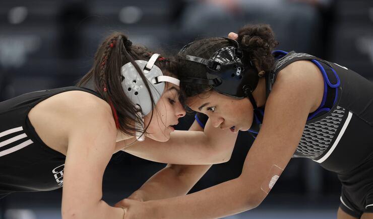 Four returning state champs in 5A from a year ago all advanced to the semifinals: Hillcrest’s Eva Zimmerman (100), Hillcrest’s Eliza Zimmerman (115), Maple Mountain’s Aurellia Ramos (190) and Jocelyn Hepler (190).